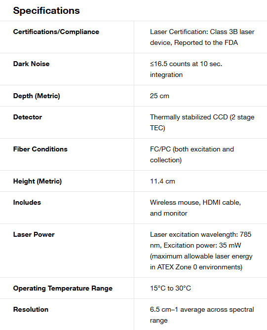 Analizator sadrži sonde projektovane za bezbedan rad na opasnim ili nepristupaćnim lokacijama, koje ispunjavaju standarde sertifikacije ATEX Zone 0, IECEx i Class 1 Division 1. Sonde omogućavaju analizu gasova, tečnosti i čvrstih materija.